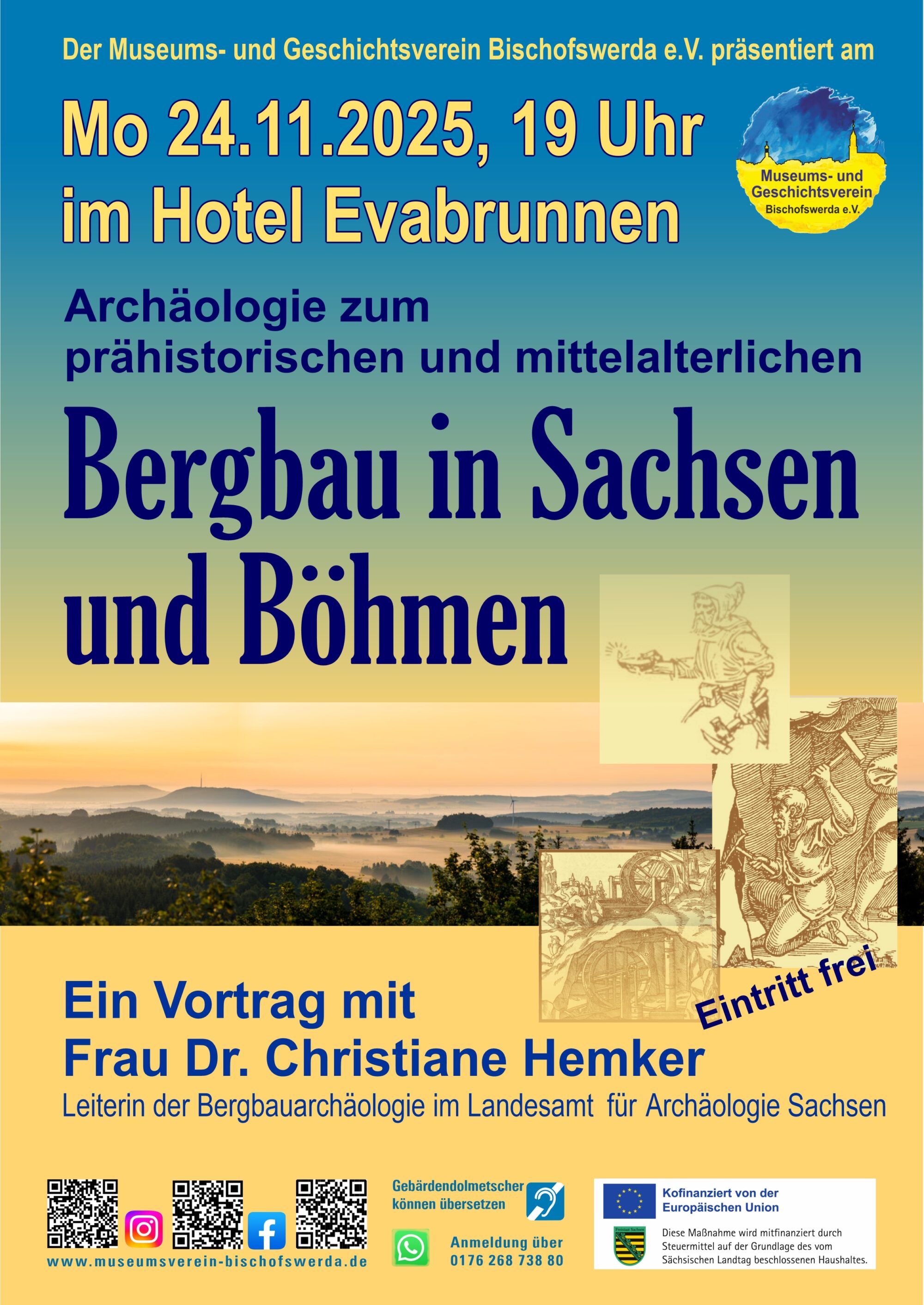 Frau Dr. Christiane Hemker ist Leiterin der Bergbauarchäologie im Landesamt für Archäologie Sachsen. Wir freuen uns auf diesen Fachvortrag.
